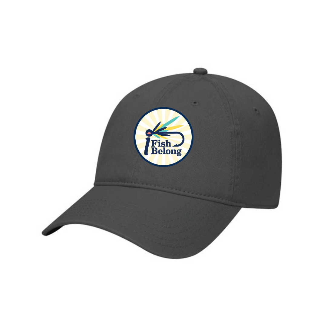 Fly Fishing hat. 6 panel, low profile, unstructured, soft crown, dad hat with buckle closure. Woven iFishiBelong logo placed in the left corner of the hat. Size fits most.