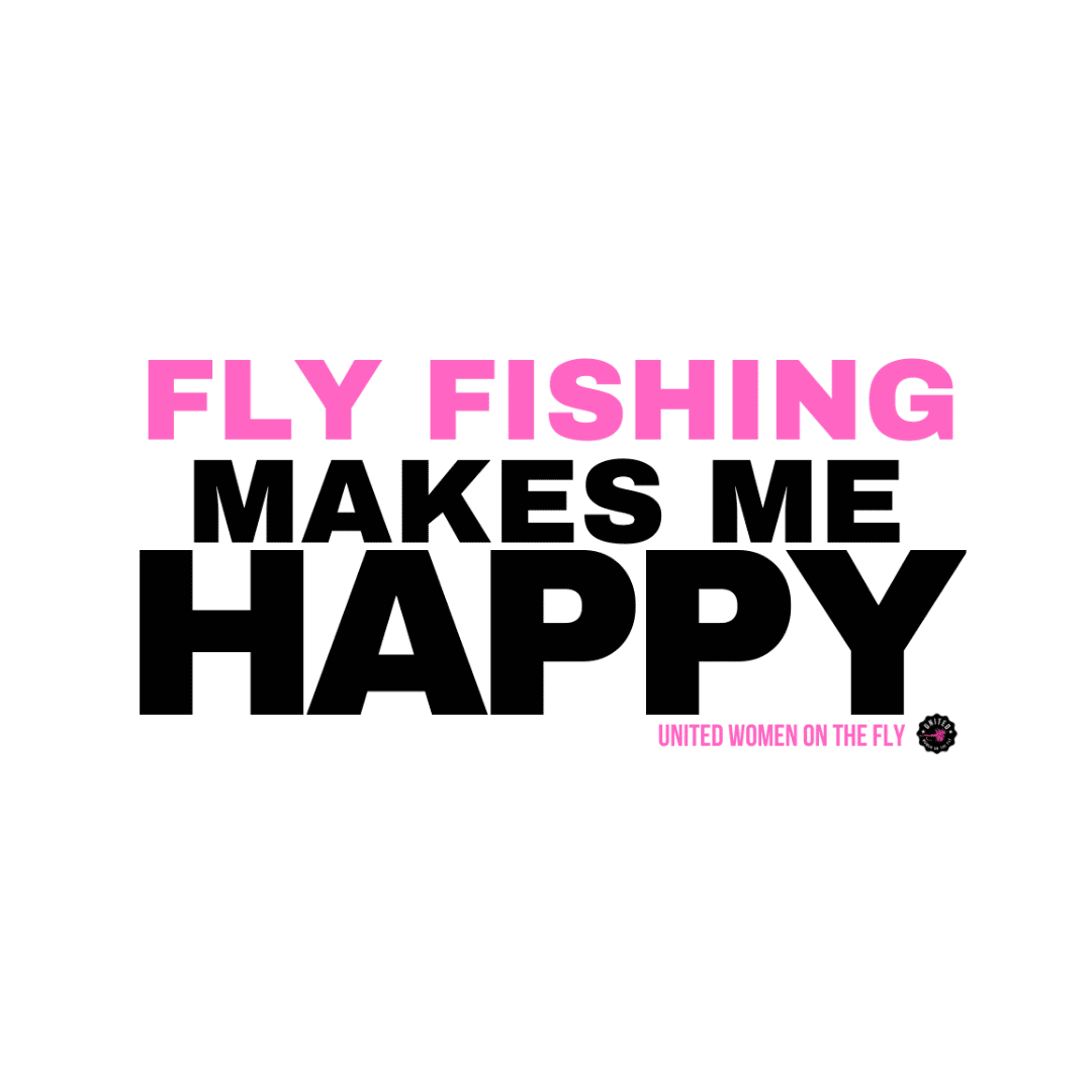 Fly fishing sticker. Does fly fishing make you happy? This vinyl weather resistant sticker is 3″ x 1.7″.