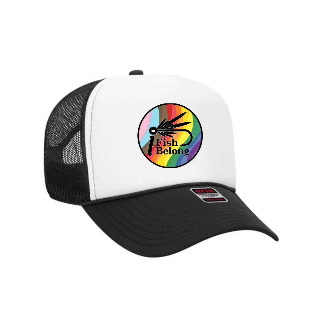 Foam - Black/White Mesh Back Trucker with Progressive Circle iFishiBelong Logo