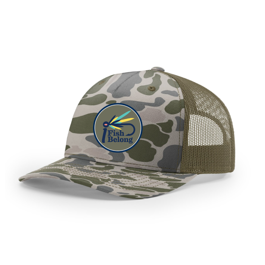 Marsh Duck Camo iFishiBelong Green Logo Structured Mesh Trucker Hat