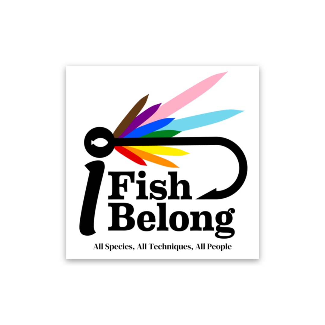 Fly fishing sticker. This 2″ x 2″ iFishiBelong Progressive Logo with All Species, All Techniques and All People sticker is durable, waterproof and weather resistant.