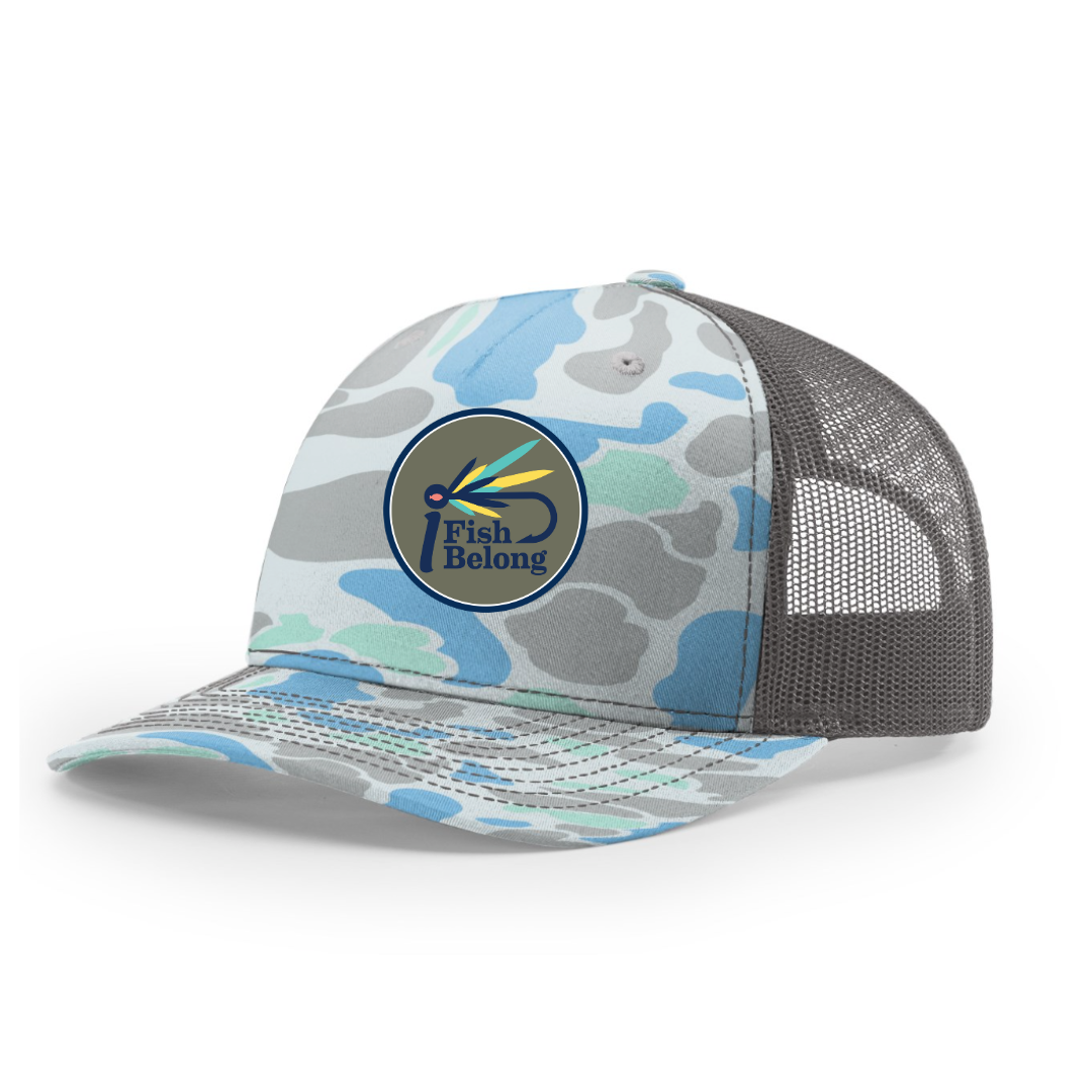 Saltwater Duck Camo iFishiBelong Logo Structured Mesh Trucker Hat