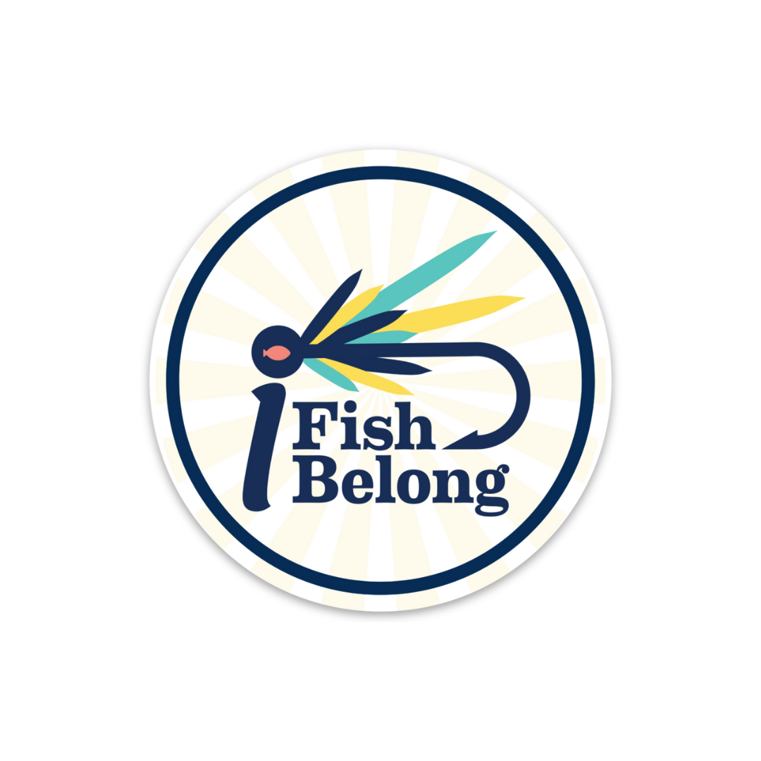 Fly fishing sticker. This 3″ x 3″ Circular iFishiBelong Starburst Logo Sticker is durable, waterproof and weather resistant.