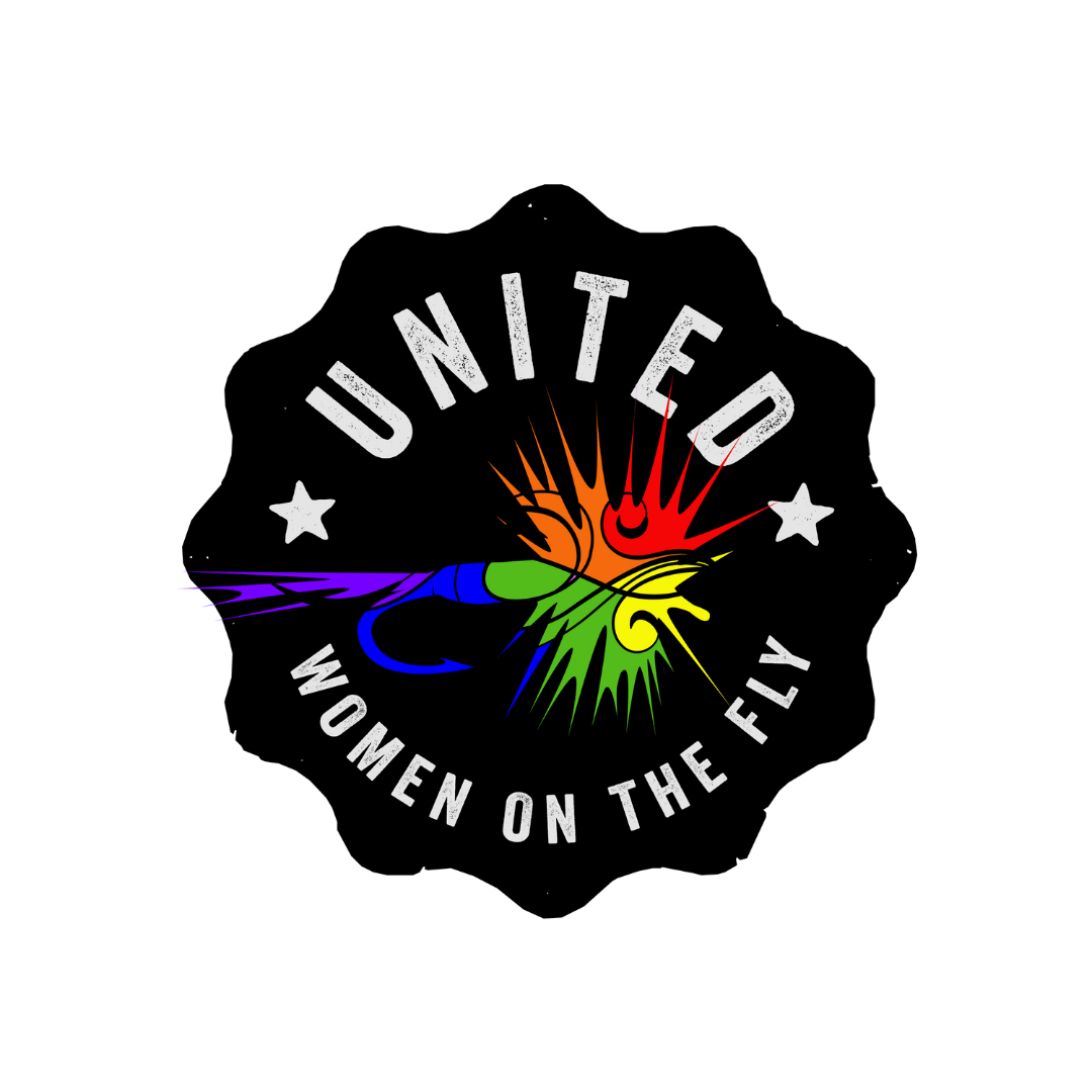 Fly fishing sticker. This Circular UWOTF Rainbow Logo Sticker is durable, waterproof and weather resistant.